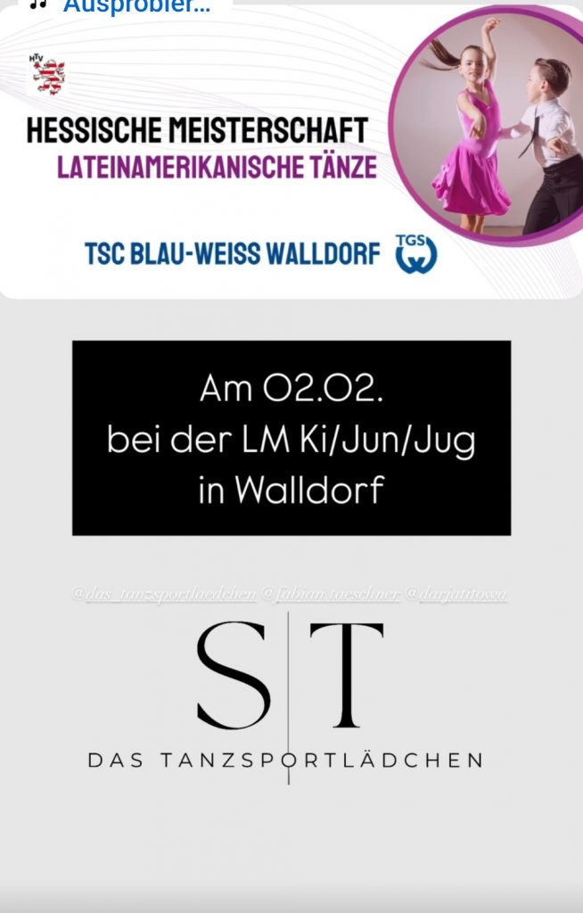 Das Tanzsportlädchen am 02.02.2025 bei der LM Ki/Jun/Jug in Waldorf. Wir freuen uns auf euch!